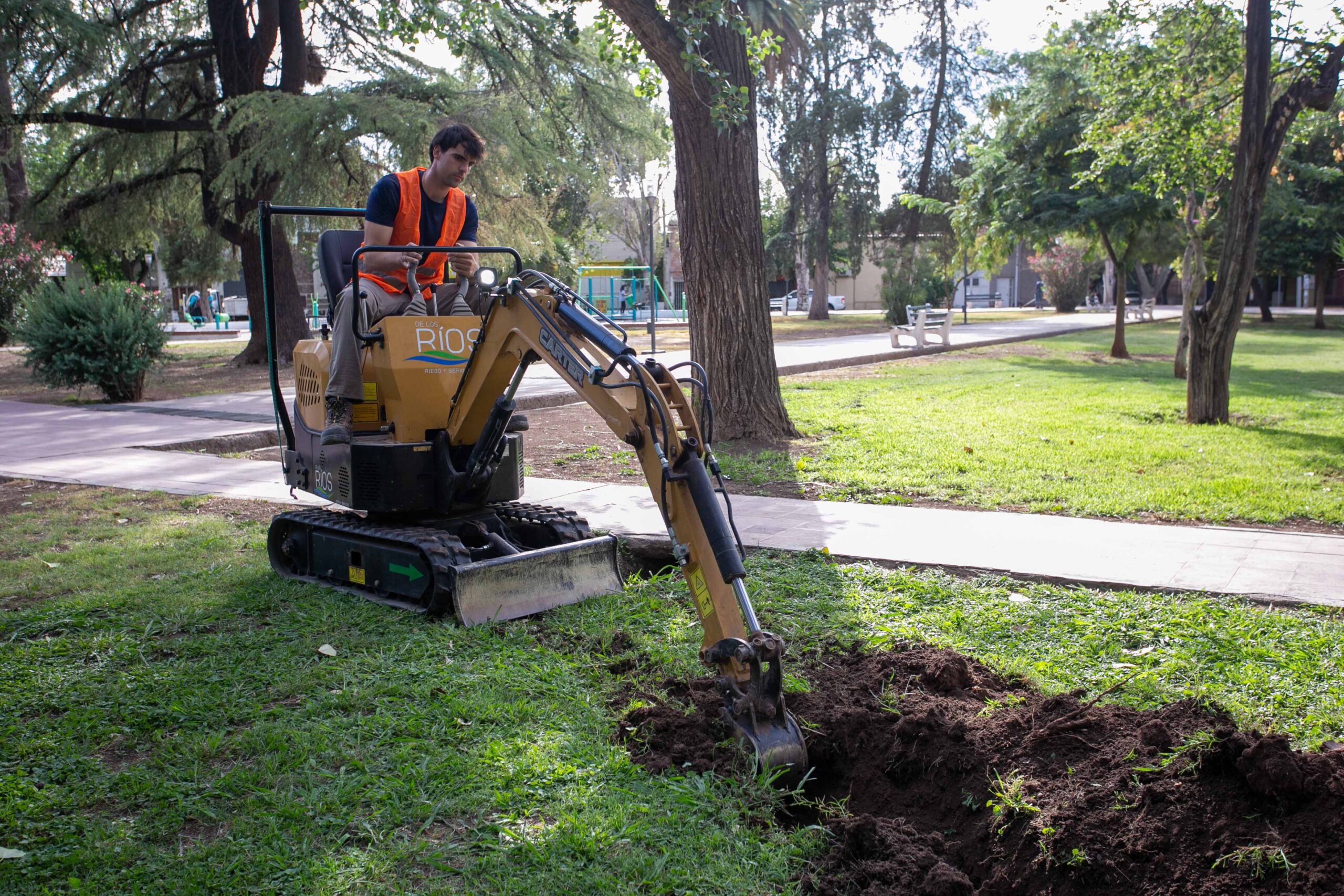 Por su parte, el Plan de Mejoramiento de Espacios Verdes representa una transformación profunda en el modo de gestión del arbolado y la vegetación urbana. Esta iniciativa promueve el paso de sistemas tradicionales de riego a métodos tecnificados y por aspersión, lo que permite duplicar la eficiencia hídrica -elevándola del 40% al 80%-, con beneficios tanto ambientales como operativos.
