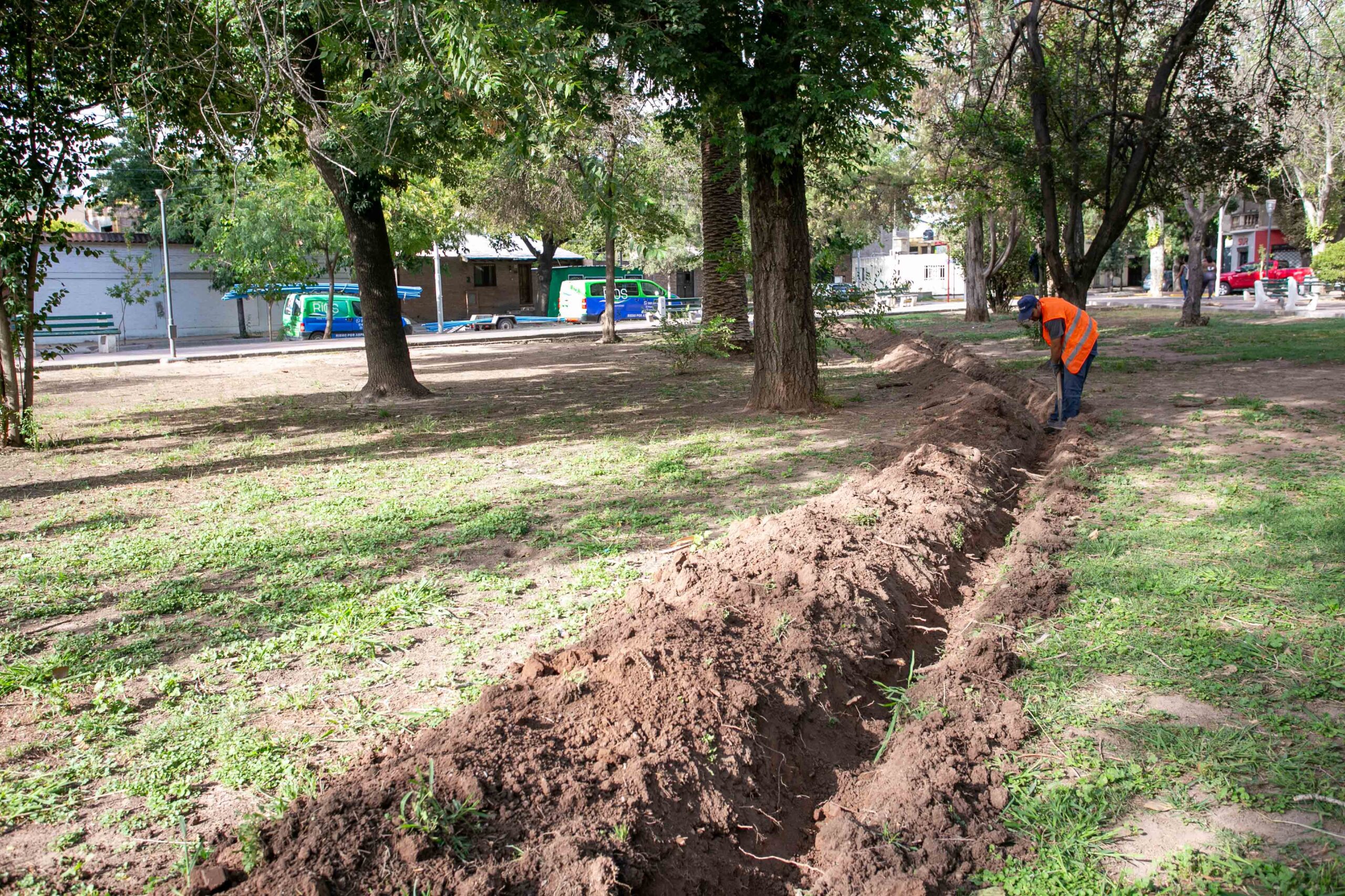 Riego eficiente en espacios verdes: Ulpiano Suarez recorrió los trabajos en la plaza Cobo de Ciudad