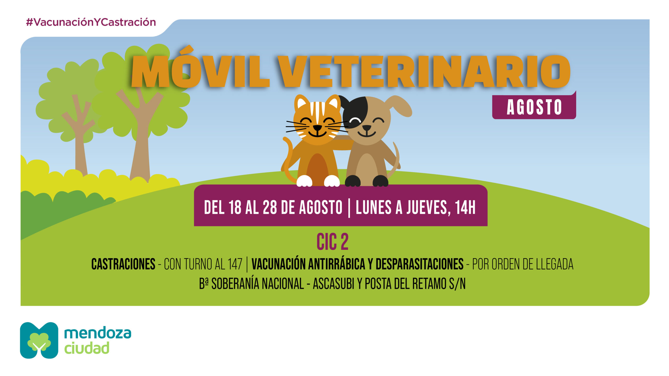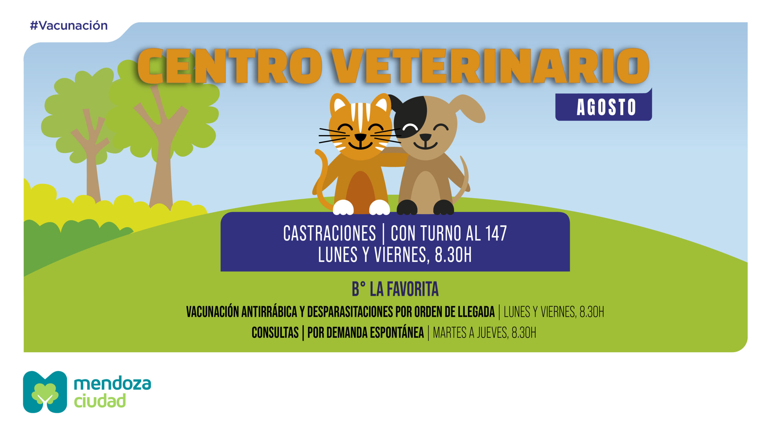 En el marco de una política pública que promueve el bienestar integral, la Ciudad de Mendoza ofrecerá durante todo agosto servicios veterinarios gratuitos en distintos puntos del territorio.