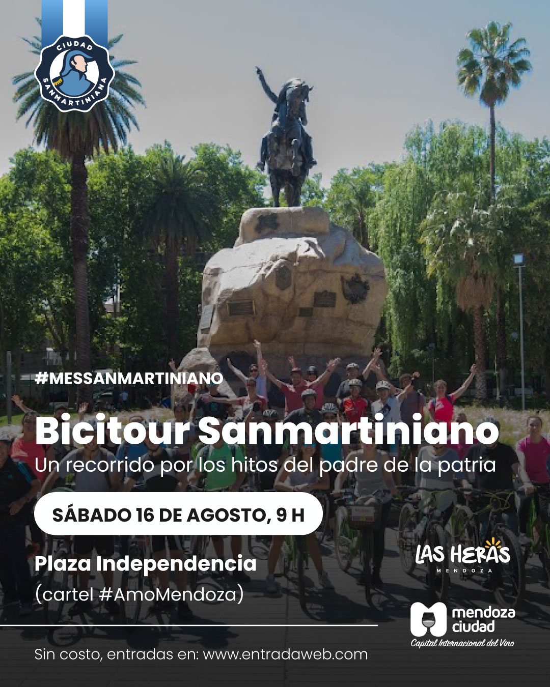 Este 16 de agosto, la Ciudad de Mendoza y la Municipalidad de Las Heras invitan a vivir una experiencia única que combina historia, actividad física y valores patrióticos: el Bicitour sanmartiniano, una propuesta gratuita y diferente para redescubrir nuestra identidad desde el movimiento y la memoria. La misma se realizará el sábado 16 de agosto, a partir de las 9 h.