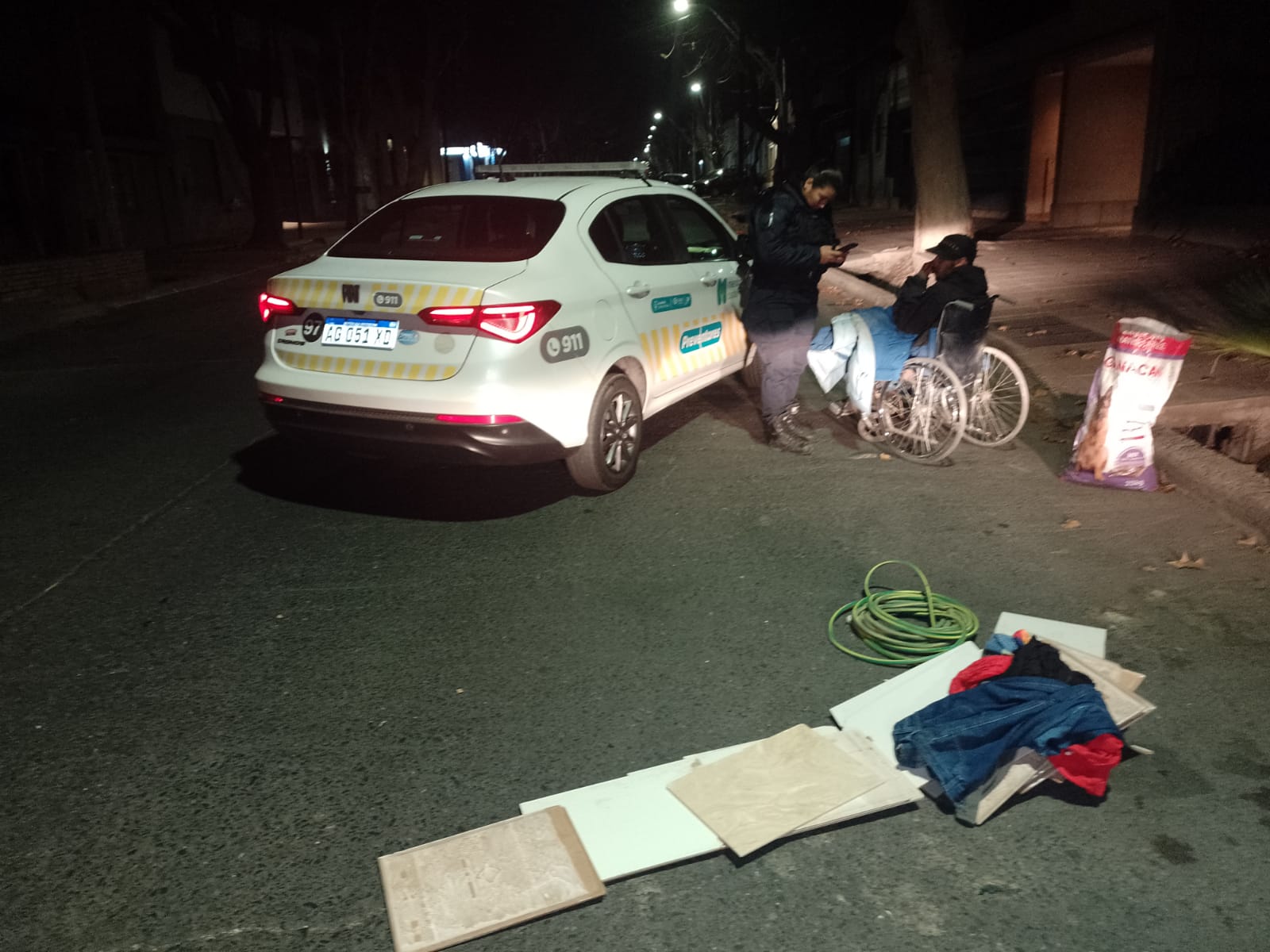 A través del sistema Ojos en Alerta, un vecino envió una notificación avisando que en esa ubicación habían dos personas robando. Rápidamente llegaron al lugar agentes de preventores, que sorprendieron a los ladrones escapando. Uno de ellos se dio a la fuga por calle Alpatacal hacia el norte, mientras que el otro, en silla de ruedas, fue aprehendido.