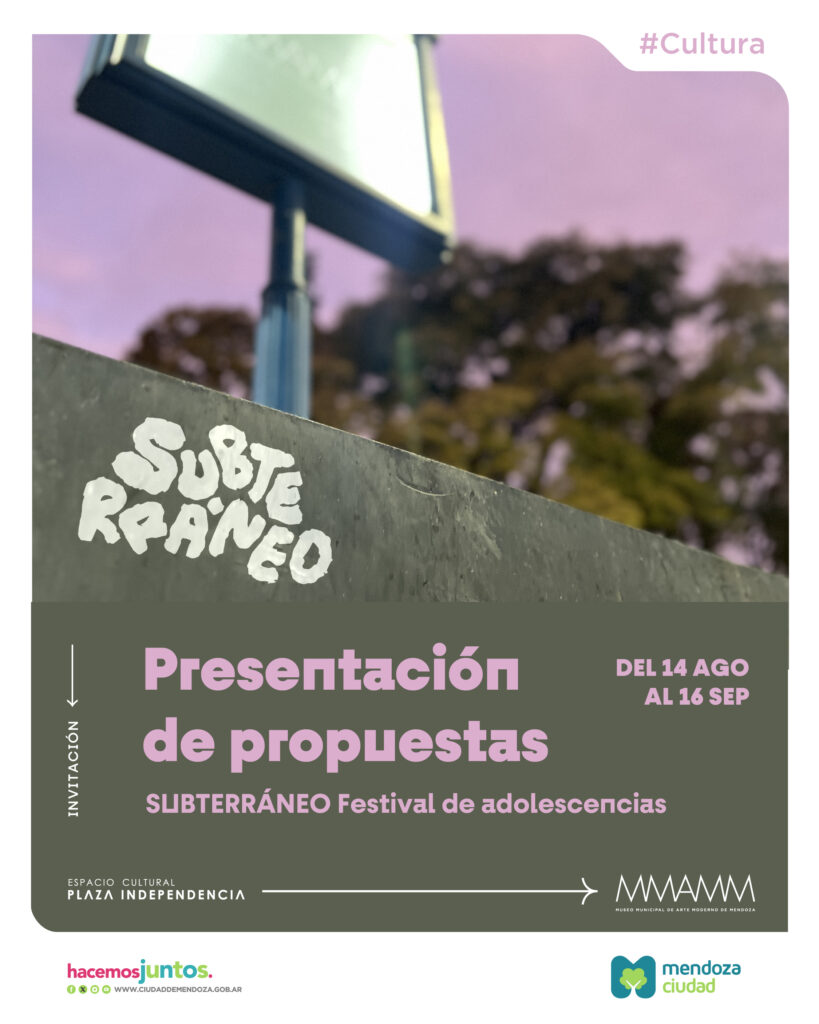 El Museo Municipal de Arte Moderno de Mendoza (MMAMM) invita a chicas y chicos de entre 13 y 18 años a ser protagonistas de “Subterráneo” Festival de Adolescencias, un encuentro artístico original y participativo que se realizará el jueves 2 de octubre, de 18.30 a 21, en las salas del museo.