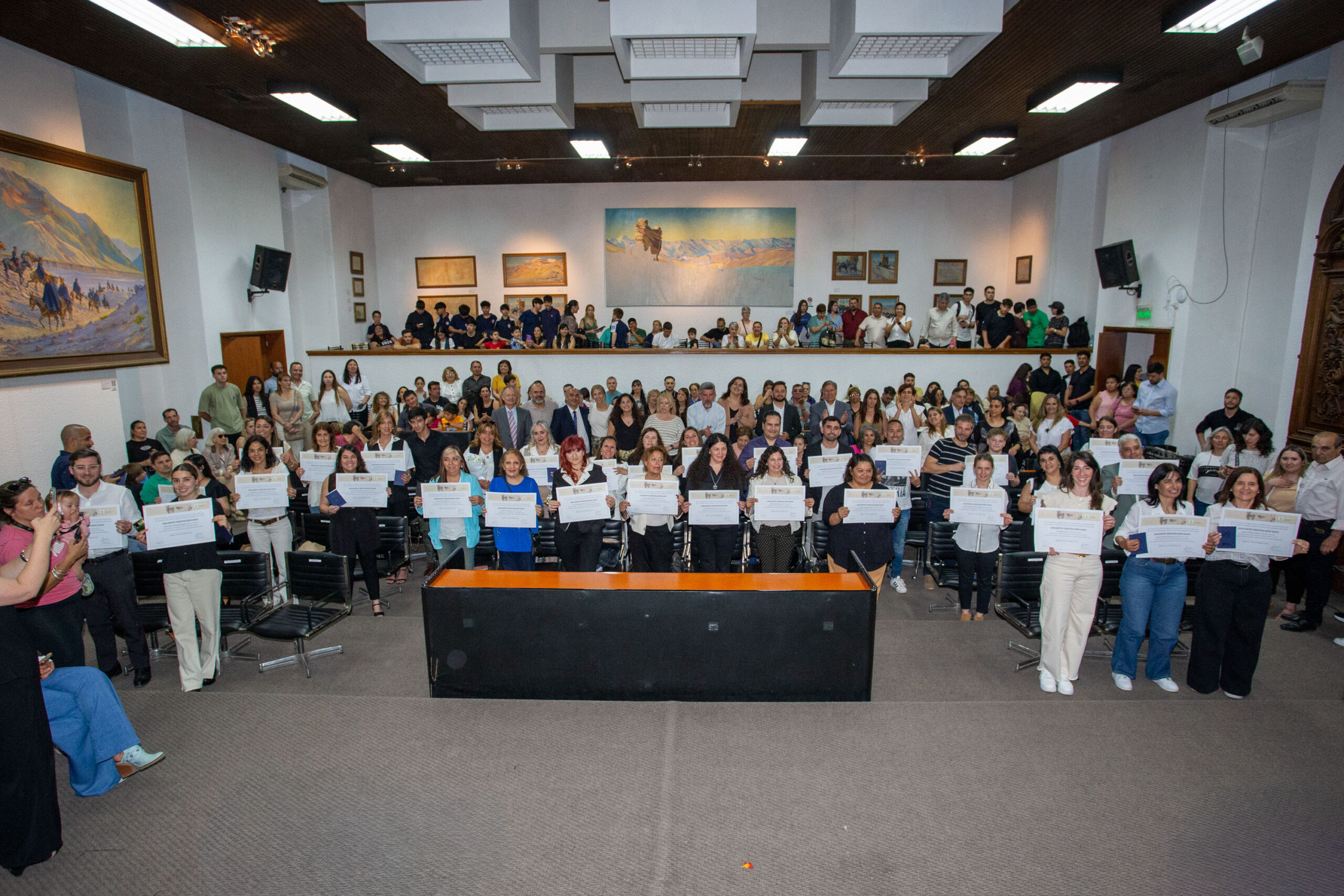Con esta distinción, 35 docentes pertenecientes a 24 instituciones fueron ovacionados por el público, sus familiares y amigos en un acto que puso en valor la enorme labor desempeñada al frente de la educación y la formación de nuestra comunidad. La ceremonia incluyó la interpretación del Himno Nacional Argentino y del Himno a Sarmiento, con la voz de Diego Flores y el piano de Mario Galván, director de la Orquesta de la Ciudad. Luego, el público se puso de pie para aplaudir la presentación de tango, bailada por Vanina Méndez y Luis Rodríguez, mientras Diego Flores continuaba cantando y Mario Galván acompañaba al piano.