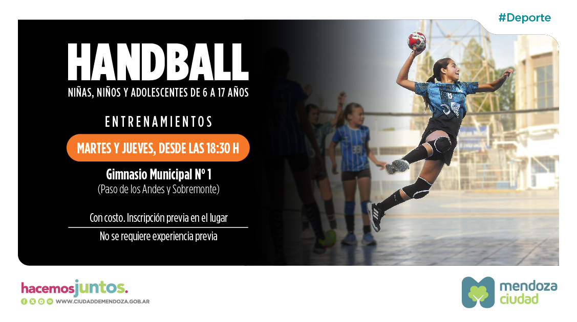 La Ciudad de Mendoza abre una convocatoria para quienes quieran jugar al handball. Se trata de una iniciativa que, en esta oportunidad, está destinada a niños, niñas y adolescentes de entre 6 y 17 años, tanto varones como mujeres, que deseen tanto iniciarse como continuar su práctica en este dinámico deporte.