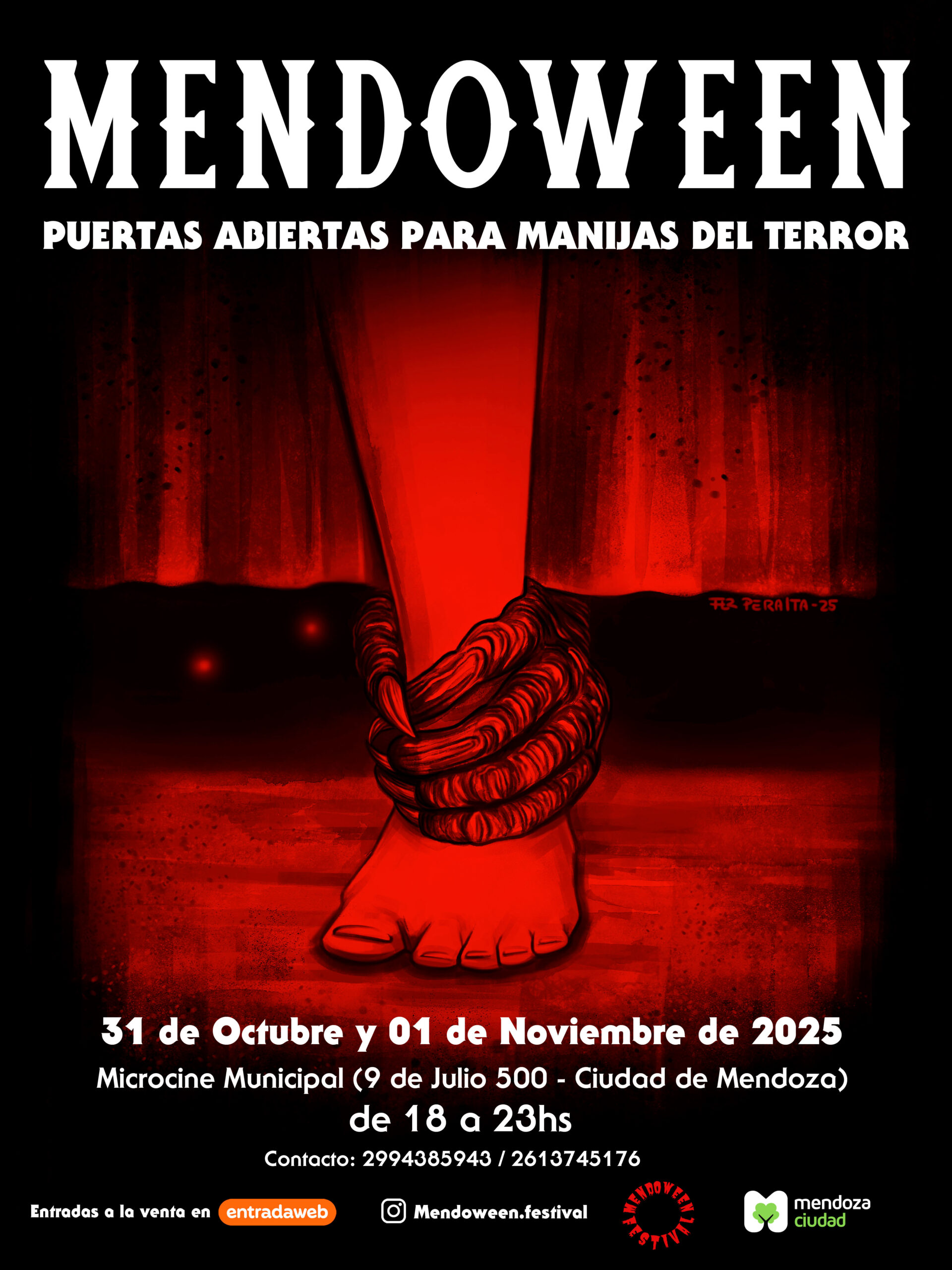 Organizado por la Subsecretaría de Cultura, Eventos Especiales y Protocolo de la Ciudad de Mendoza, el Festival Mendoween será un punto de encuentro para la comunidad del terror mendocino, un espacio donde lo oscuro, lo creativo y lo colectivo se unen para celebrar la imaginación en su forma más libre.