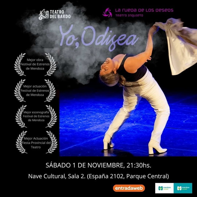 “Yo, Odisea”, la obra distinguida como Mejor Obra, Mejor Interpretación Protagónica y Mejor Diseño Escenográfico en el reciente Festival de Estrenos de Teatro 2025, llega este fin de semana a la Nave Cultural (España y Maza, Parque Central, Ciudad de Mendoza).