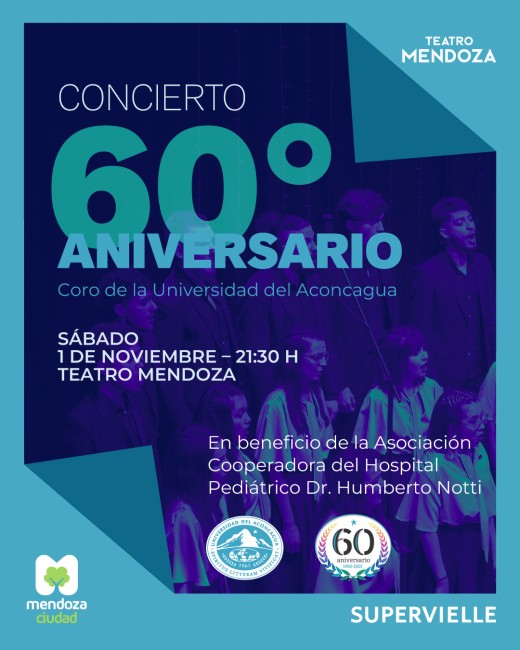 Como cierre de las celebraciones por el 60º aniversario de la Universidad del Aconcagua y el 30º aniversario de su Coro, la institución académica ofrecerá un espectáculo musical y visual de gran nivel artístico, que reunirá a 42 coreutas, 10 cantantes solistas, ocho bailarines y músicos en vivo, en una puesta escénica que promete sorprender al público.