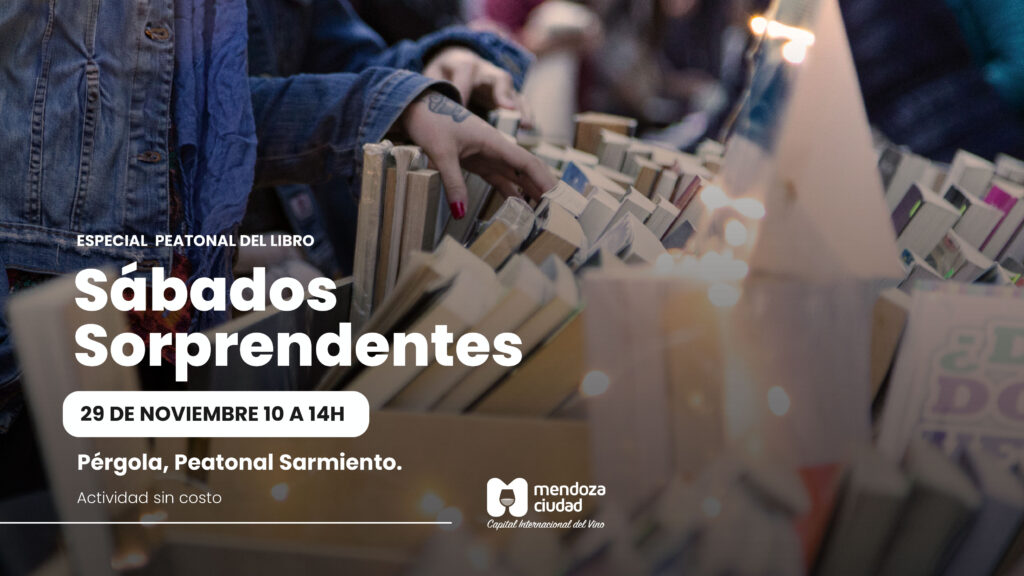 Continúan los “Sábados Sorprendentes”. Este sábado 29 de noviembre, de 10 a 14, la propuesta estará centrada en la Peatonal del Libro, que reunirá a 16 librerías locales que instalarán sus mesones en la calle para ofrecer promociones, descuentos y sorteos especiales.