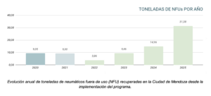 El programa muestra un crecimiento sostenido en su implementación. Durante 2025, se alcanzaron 31 toneladas de NFU recuperadas, más del doble de las 14,96 toneladas registradas en 2024. Esta evolución consolida una tendencia positiva respecto de años anteriores y refleja el impacto de las mejoras incorporadas en la operatoria.