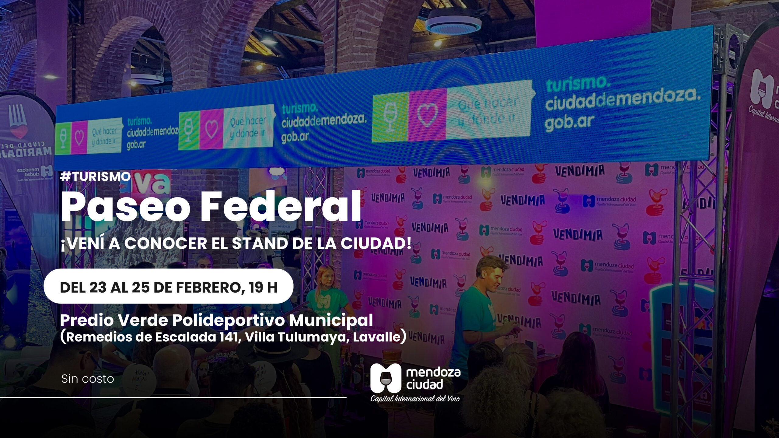 Hasta el miércoles 25, de 19 a 23, muestra stands de los 18 municipios y cada día está destinado a diferentes departamentos que sobre el escenario ofrecen su presentación. El Paseo Federal es una de las celebraciones más destacadas del calendario vendimial.